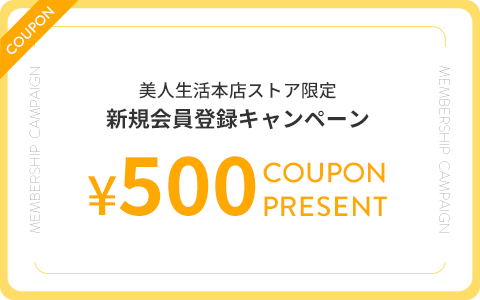 期間中、美人生活 FLAGSHIP STORE に新しく会員登録いただいた方には、3,000円(税込)以上のお買い物で使える500円OFFクーポンをプレゼント!