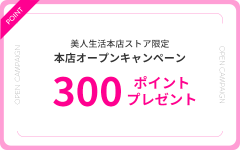 期間中、美人生活 FLAGSHIP STORE に新しく会員登録いただいた方には、当店でお買い物で使える300Pをプレゼント!