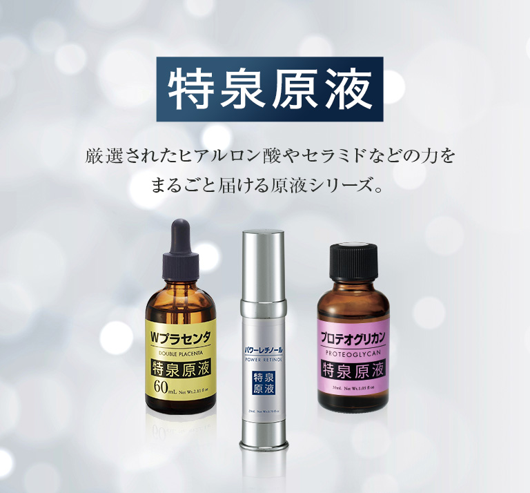 厳選されたヒアルロン酸やセラミドなどの力をまるごと届ける原液シリーズ。