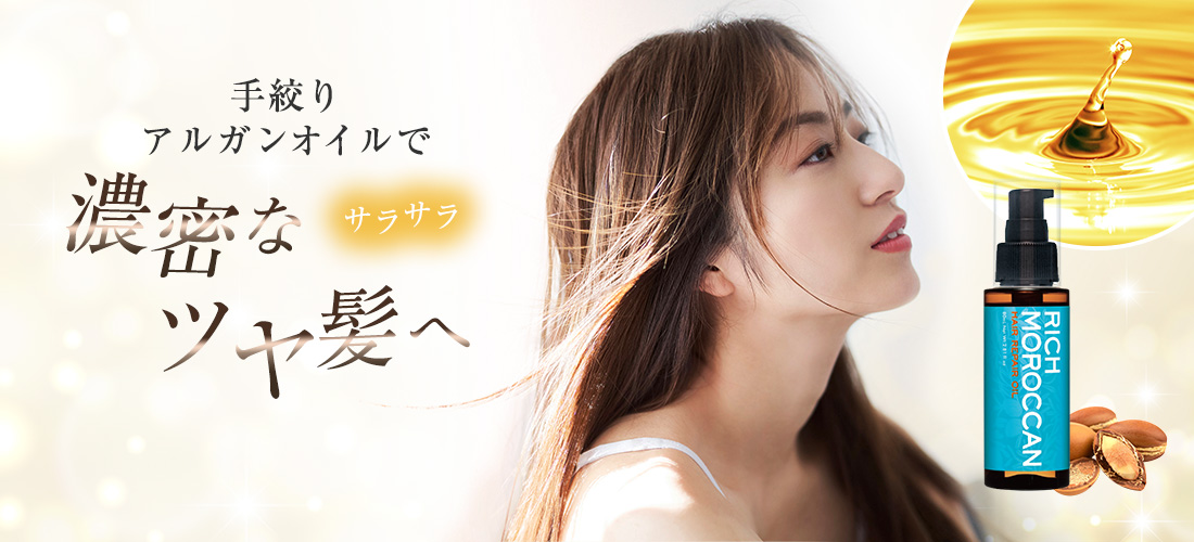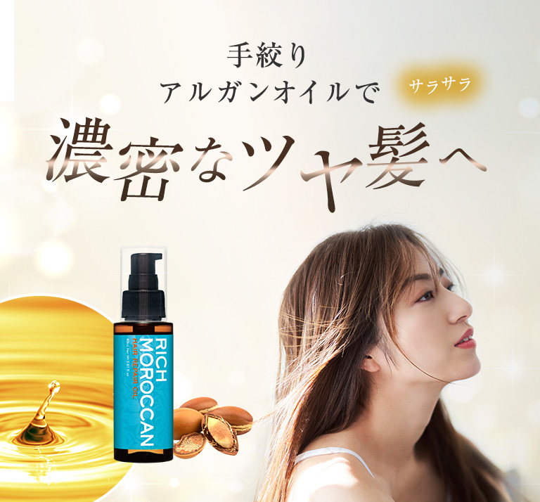 美髪成分が豊富に詰まったアルガンオイルを、手絞りでたっぷり。艶とうるおいの輝きをあなたの髪に。