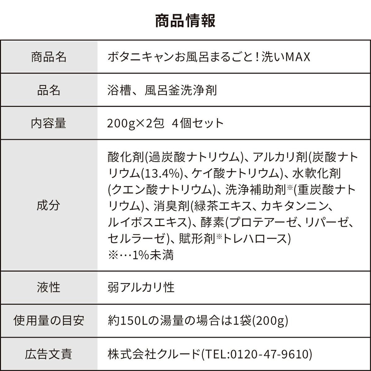 他の画像を見る \天然由来成分100%/風呂釜や風呂桶・風呂いす・ふたなど風呂用品をつけ置きするだけの湯ドロハンターに代わる風呂釜洗浄剤【ホワイトデー プチギフト プレゼント】 ボタニキャン お風呂まるごと!洗いマックス(200g×2包)4個セット 定価 ¥ 3,480 のところ 当店特別価格 ¥ 3,280 税込 カートに入れる お気に入りに登録する
