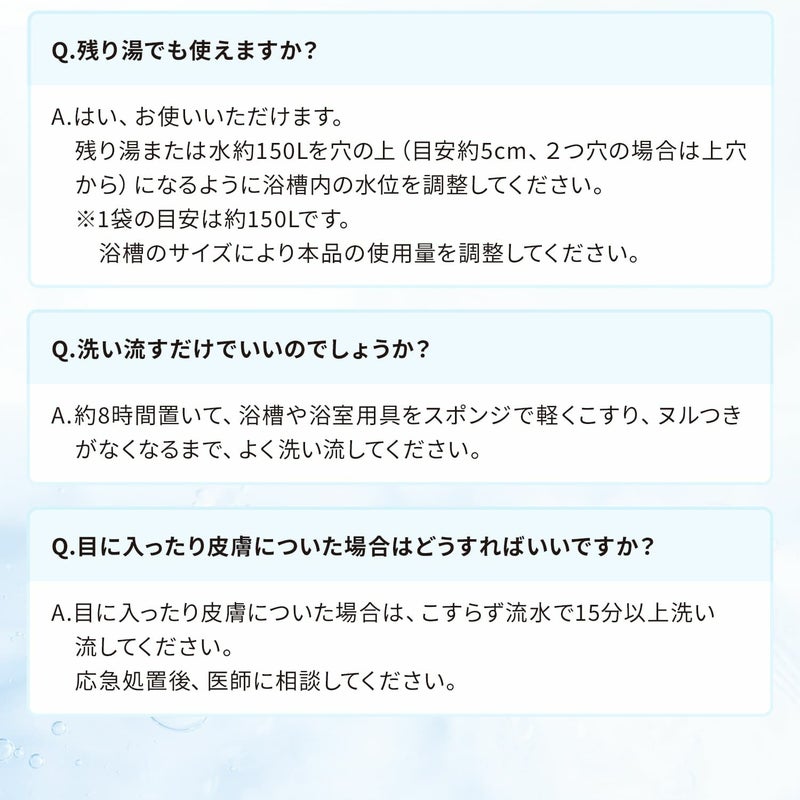 ※1袋の目安は約150Lです。浴槽のサイズにより本品の使用量を調整してください。