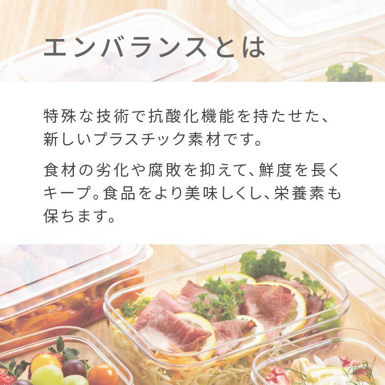 他の画像を見る \特殊加工で鮮度キープ/野菜やおかず、冷凍ご飯などが長持ちするおしゃれな保存容器、エンバランスフードコンテナ【ホワイトデー プチギフト プレゼント】 エンバランス クリア コンテナ Sサイズ(620ml)+Mサイズ(920ml) 定価 ¥ 4,730 のところ 当店特別価格 ¥ 4,680 税込 カートに入れる お気に入りに登録する