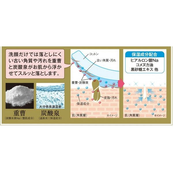 洗顔だけでは落としきれない古い角質や汚れ。洗顔後、コットンに含ませてお肌を拭き取るだけ。重曹と炭酸泉がお肌から汚れを浮かせてスルっと落とします。ハトムギ・ドクダミエキスを配合で肌荒れケアにも。洗浄剤・界面活性剤を含んでいないので、普段の化粧水としてもお使いいただけます。※プレミアムピュアコットン付き(45枚入り)