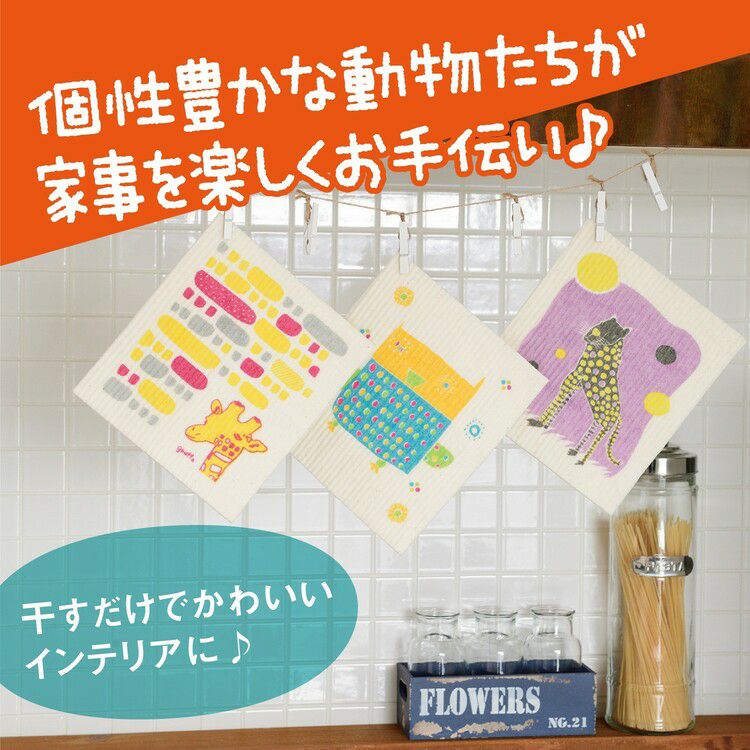 \北欧のお家で定番・100%天然素材のスポンジワイプ/セルロース製の水切りマットにもなるキッチンクロス【退職祝い お返し プチギフト】【ホワイトデー プチギフト プレゼント】 北欧スポンジふきん(キリン模様のドット&ストライプ)