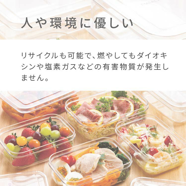 エンバランス「クリアコンテナ」はふたも本体も透明なので、中の食材がよく見え、すっきり収納できます。