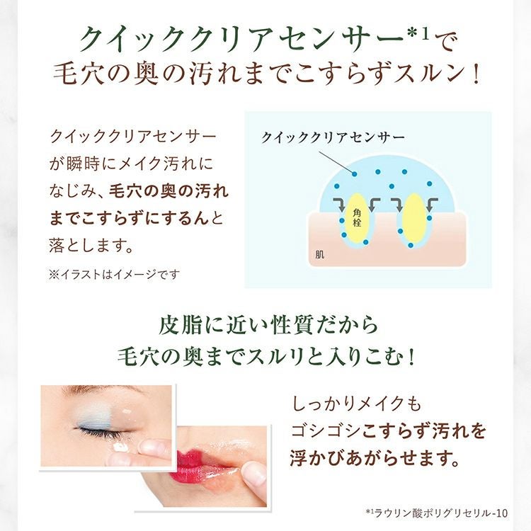 植物オイルと酵素のWパワー+独自のクイッククリアセンサー*が濃いメイクや毛穴の奥の汚れにも素早くなじんで、こすらず「するん」と落とします。