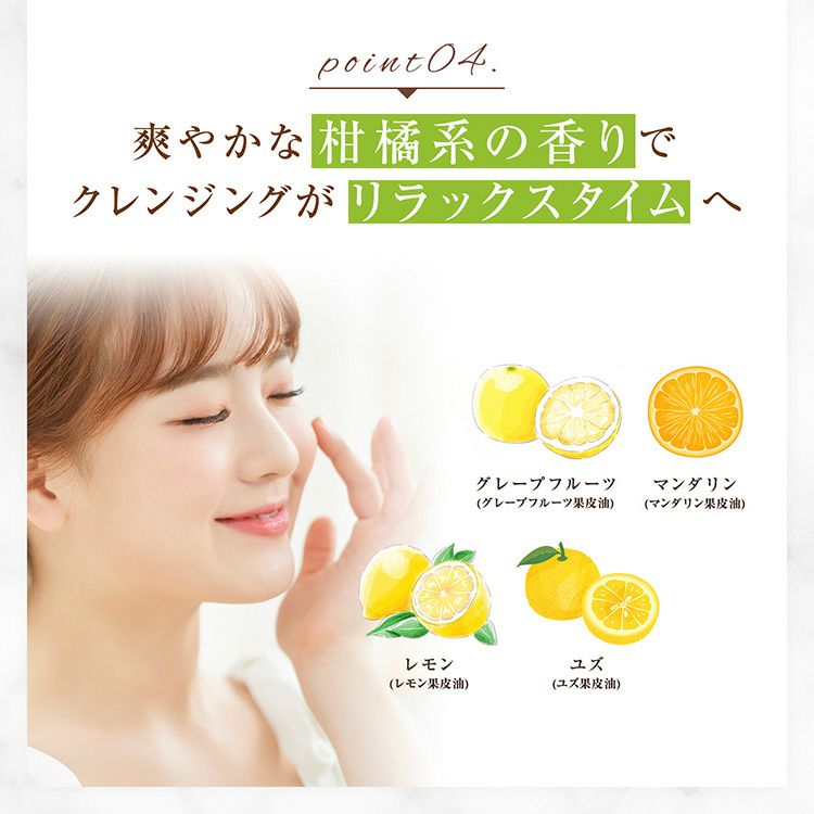 オレンジ、グレープフルーツなどの柑橘系の香りでクレンジングがリラックスタイムへ。
