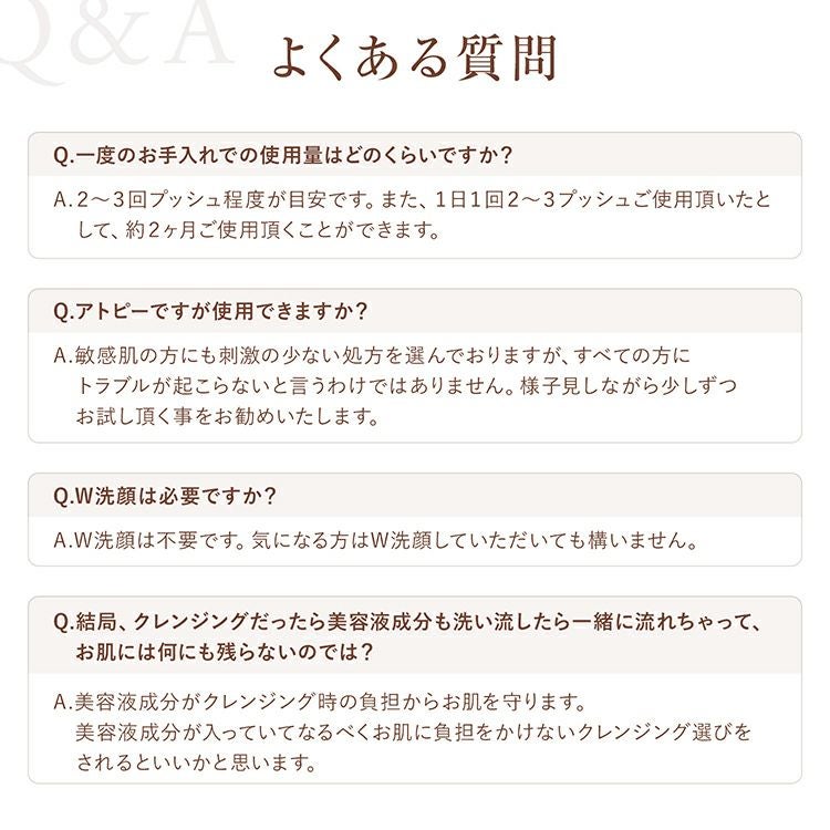 | 約2ヶ月分(1本あたり):1日1回 2~3プッシュをお顔のお手入れに使用した場合 |