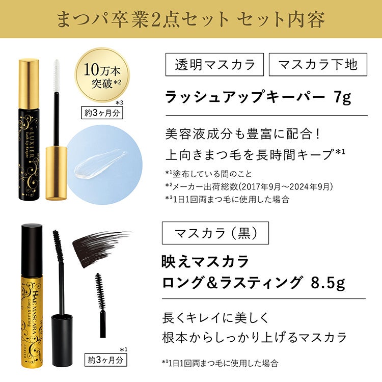 お湯で落ちる目に優しいフィルムタイプの美容液マスカラの2本セットです。