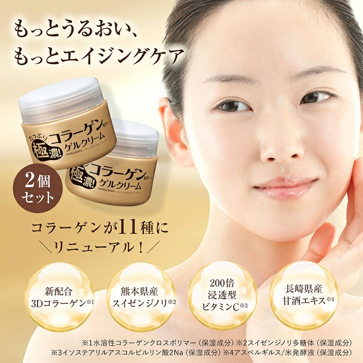 他の画像を見る 11種類のコラーゲンとスイゼンジノリで深くうるおう!【ホワイトデー コスメ ギフト】 たっぷり極濃! コラーゲン ゲルクリーム 100g 2個組 定価 ¥ 3,260 のところ 当店特別価格 ¥ 3,200 税込 カートに入れる お気に入りに登録する