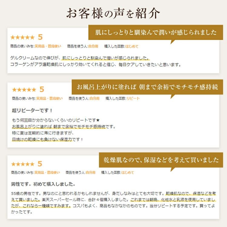 他の画像を見る \超高分子体・スイゼンジノリ+11種類or9種類のコラーゲンを厳選配合!/年齢肌にハリとうるおいのオールインワンゲル+保湿化粧水のセット【ホワイトデー コスメ ギフト】 たっぷり極濃! コラーゲン セット(ゲル 100g+化粧水 230ml) 定価 ¥ 3,465 のところ 当店特別価格 ¥ 3,388 税込 カートに入れる お気に入りに登録する