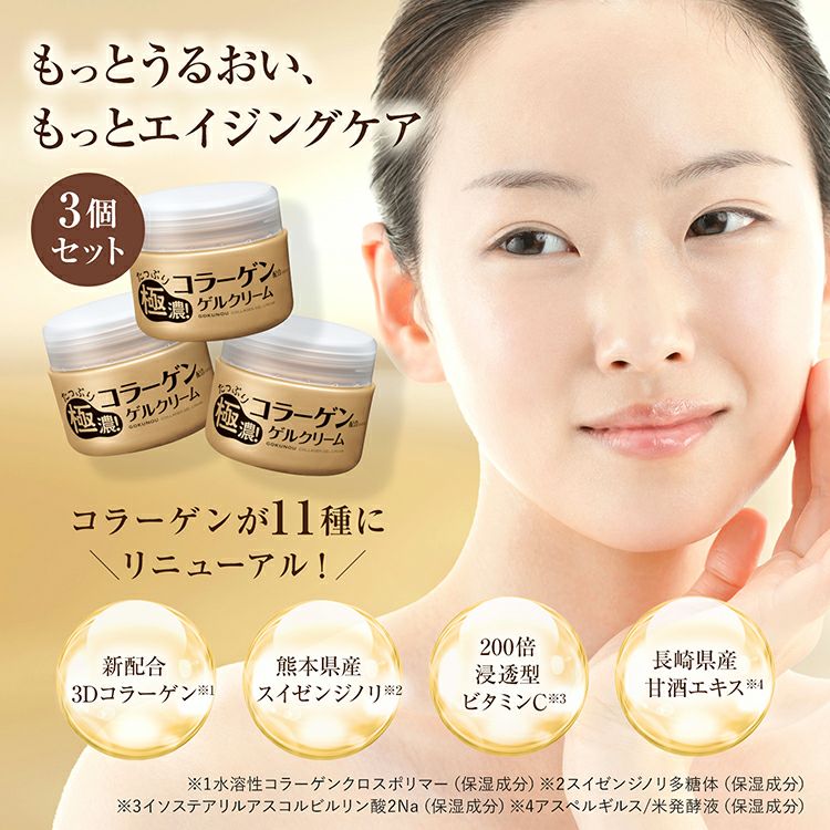 他の画像を見る 11種類のコラーゲンとスイゼンジノリで深くうるおう!【ホワイトデー コスメ ギフト】 たっぷり極濃! コラーゲン ゲルクリーム 100g 3個組 定価 ¥ 4,890 のところ 当店特別価格 ¥ 4,800 税込 カートに入れる お気に入りに登録する