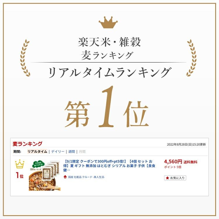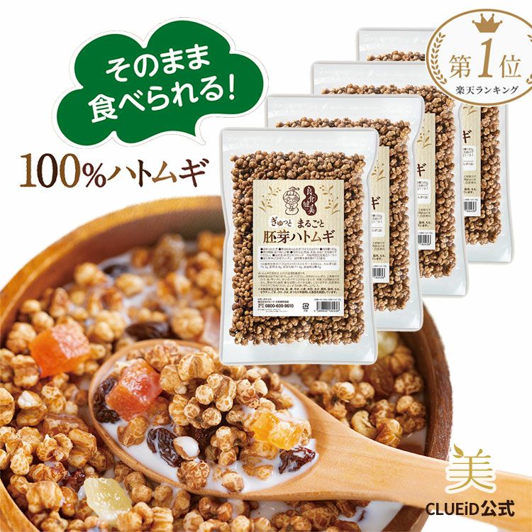 【楽天リアルタイムランキング1位】\シリアル感覚でそのまま食べられる/無添加・無農薬の胚芽付きハトムギ【小分けお菓子ギフト】【ホワイトデー ギフト プレゼント】 良食健美 ぎゅっとまるごと 胚芽ハトムギ 180g 4個組