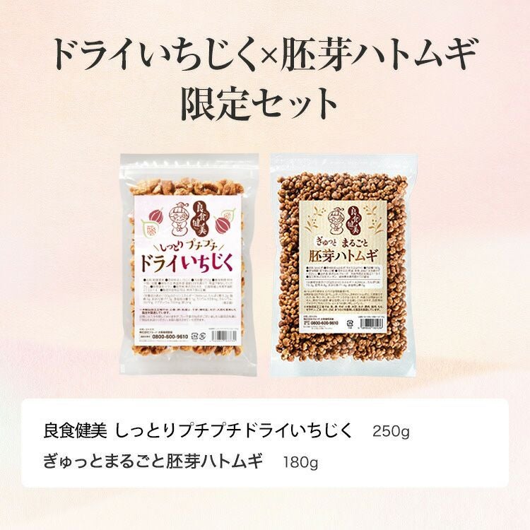 良食健美 しっとりプチプチドライいちじく 250g+ぎゅっとまるごと 胚芽ハトムギ 180g