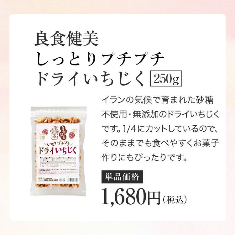 3. 良食健美 しっとりプチプチ ドライいちじく 250g+ぎゅっとまるごと 胚芽ハトムギ 180g