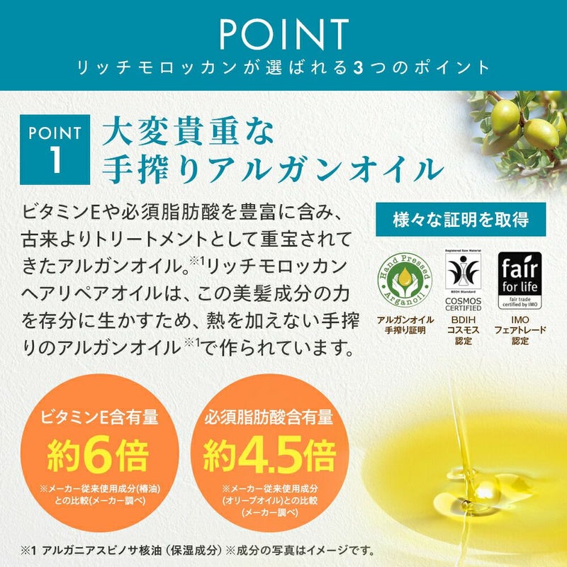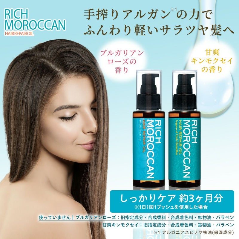 リッチ モロッカン ヘアリペア オイル 80ml ブルガリアンローズ 3本組