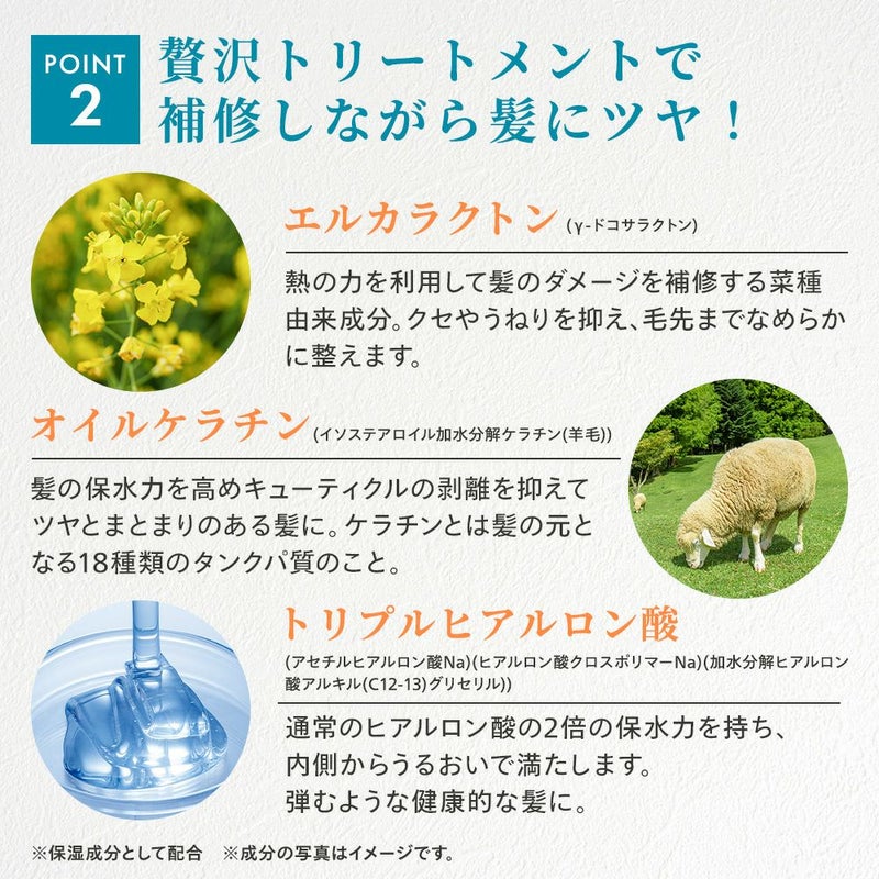 3Dヒアルロン酸などの美髪成分もたっぷり。