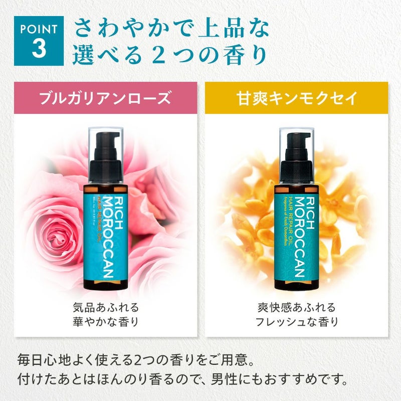 4. リッチ モロッカン ヘアリペア オイル 80ml ブルガリアンローズ 3本組