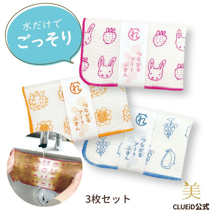 他の画像を見る \頑固な油汚れに水だけで落ちる!/キッチンコンロや電子レンジ、冷蔵庫などの掃除に、洗剤不要の日本製ふきん【退職祝い お返し プチギフト】【ホワイトデー プチギフト プレゼント】 つながるアートふきん 3種類セット(うさぎイチゴ・らいおんヒマワリ・ぺんぎんブドウ) 定価 ¥ 1,620 のところ 当店特別価格 ¥ 1,480 税込 詳細を見る お気に入りに登録する