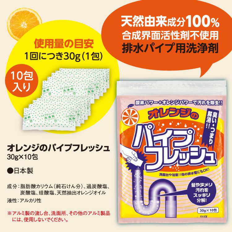 他の画像を見る \プロも認める洗浄力!天然由来成分100%で安心な排水溝クリーナー/キッチンのシンク・洗面台・お風呂の排水口のぬめり、汚れ、髪の毛をしっかり分解【ホワイトデー ギフト】 オレンジのパイプフレッシュ 30g×10包 2個組 定価 ¥ 1,720 のところ 当店特別価格 ¥ 1,660 税込 カートに入れる お気に入りに登録する