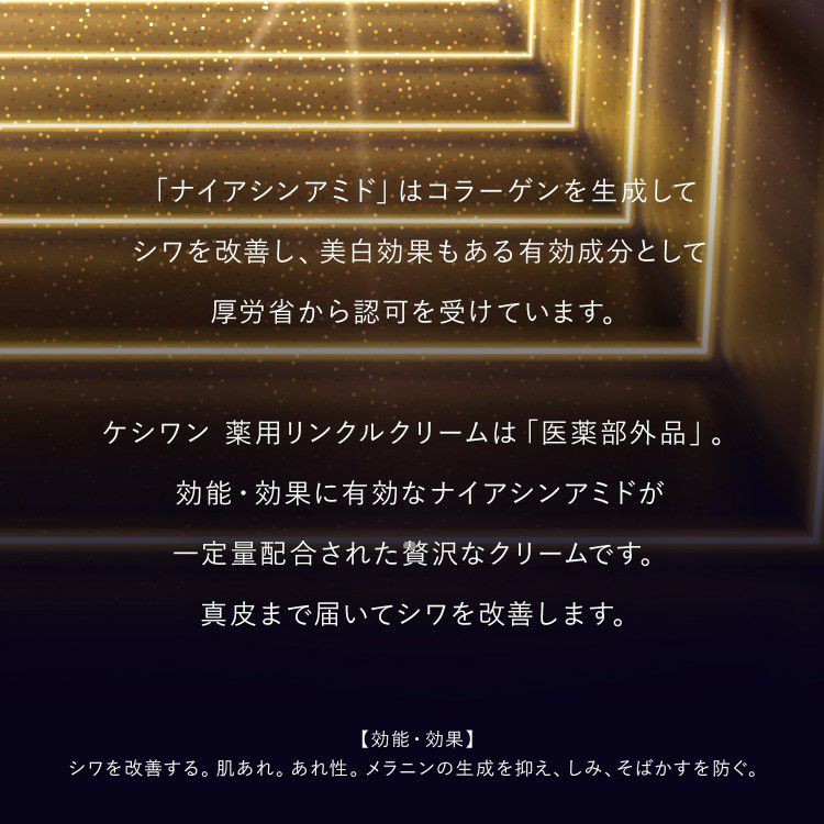 他の画像を見る \今あるシワに効く!/ナイアシンアミド配合で目元、ほうれい線、首などのシワを改善、メラニンの生成を抑えてしみ・そばかすを防ぐクリーム【ホワイトデー コスメ ギフト】 ケシワン 薬用 リンクルクリーム 20g 2本組 定価 ¥ 4,210 のところ 当店特別価格 ¥ 3,880 税込 詳細を見る お気に入りに登録する