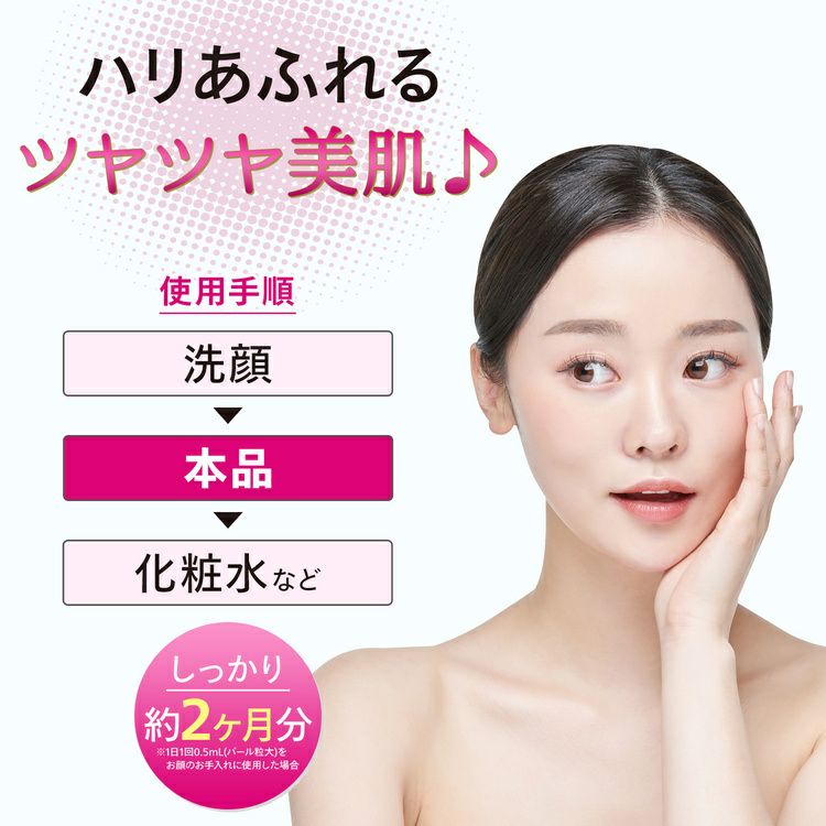 約2ヶ月分(1本あたり):1日1回 0.5mL(パール粒大)をお顔のお手入れに使用した場合