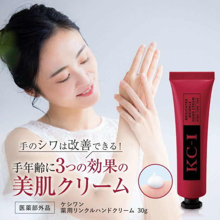 \シワ・しみ・肌荒れに/ナイアシンアミド配合で手の甲のシワを改善、メラニンの生成を抑えてシミ・そばかすを防ぎ、肌荒れを防ぐハンドクリーム【ホワイトデー コスメ ギフト】 ケシワン 薬用 リンクルハンドクリーム 30g 2本組