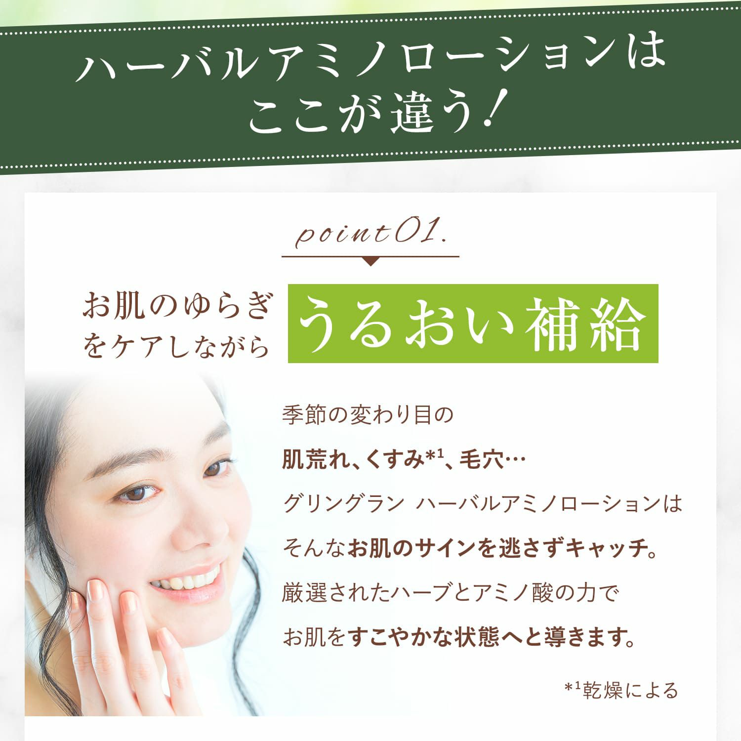 \ハトムギエキスとドクダミエキスを2倍配合してリニューアル/ぽろぽろつるるん美肌のボタニカル化粧水【ホワイトデー コスメ ギフト】 グリングラン ハーバルアミノ ローション 150ml